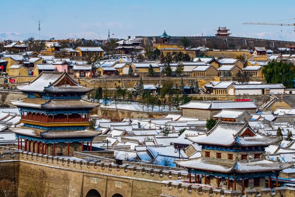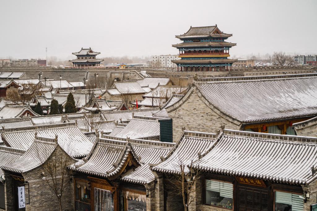山西忻州古城的雪景。
