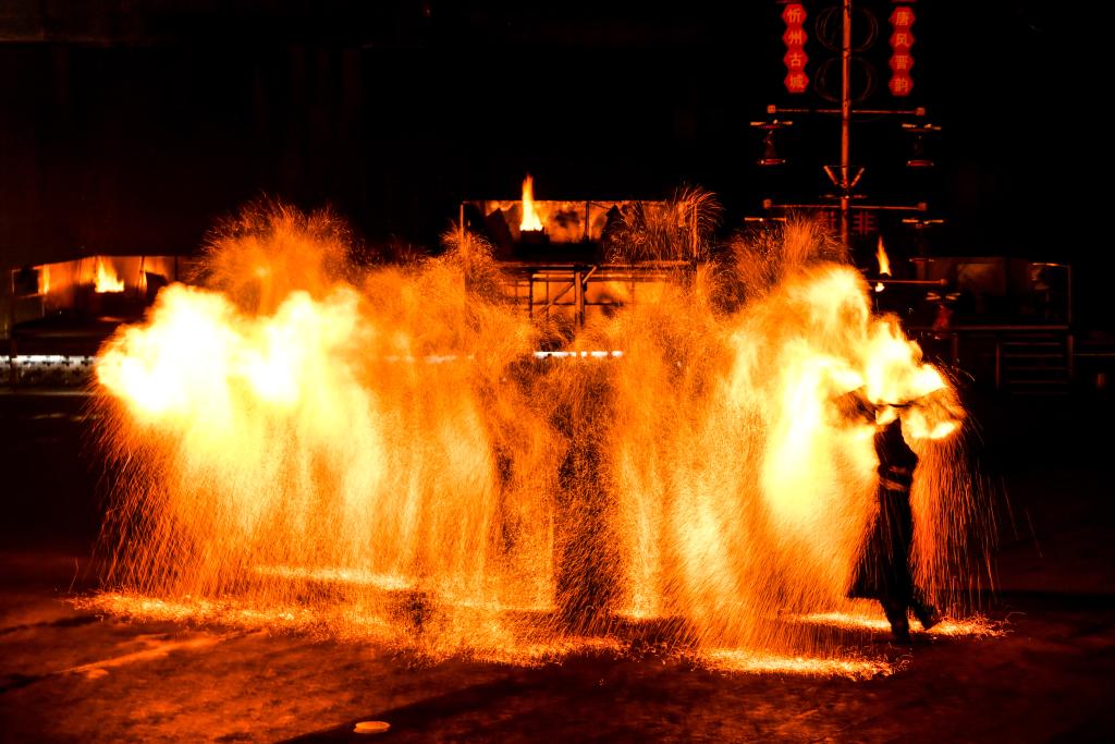 忻州古城打铁花表演。
