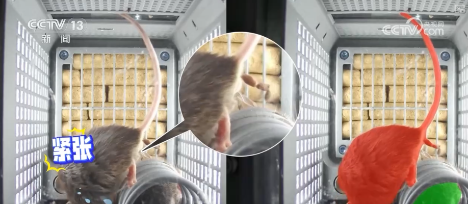 中国科学院动物研究所副研究员李天达介绍,回来的数据是在天上的一些行为变化,最开始他们发现小鼠都是比较紧张的。因为在地面上,它是在二维环境下生活,每个动作都是紧紧抓着舱壁的。在天上它也认为还是地面状态,所以它的行走运动都是抓着舱壁。原本是5到7天,最后推迟到14天,小鼠的适应性就有了时间去研究。当时在上天之前,他们对小鼠如何睡眠是一个特别担心的事,因为不知道小鼠到底是抓着睡觉,还是怎么睡。大家都知道,航天员的睡觉都是有睡袋束缚的状态,固定住的,小鼠没有可以漂着睡觉。