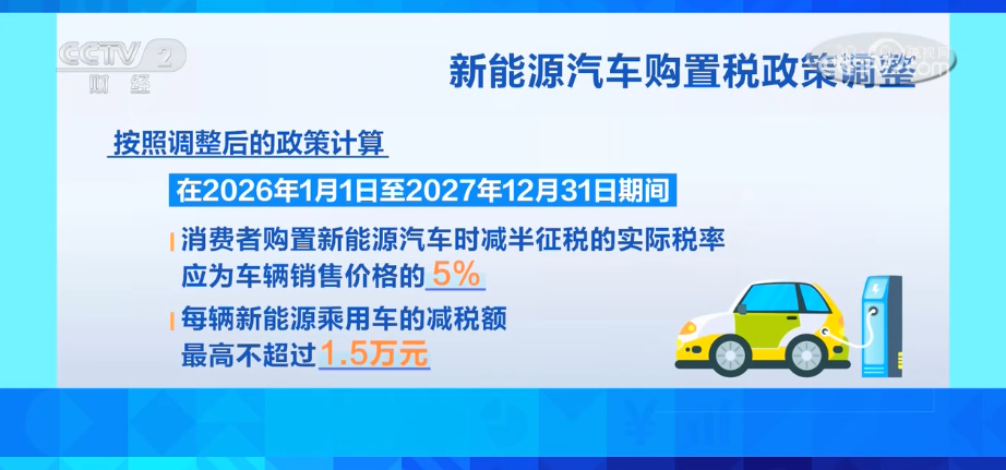 央视网消息:从2026年1月1日起到2027年12月31日期间,我国消费者在购买新能源汽车时享受到的购置税减免优惠,从“免征”调整为“减半征收”。这一政策的调整落地,给新一年的汽车消费市场带来了哪些变化?