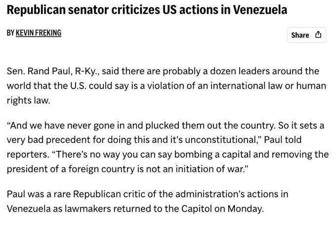 可以说,委内瑞拉行动把美国的国内撕裂推到了前台:党派在争总统权力边界,媒体在争论这到底算不算战争,智库与法学界在争规则是否被踩穿。